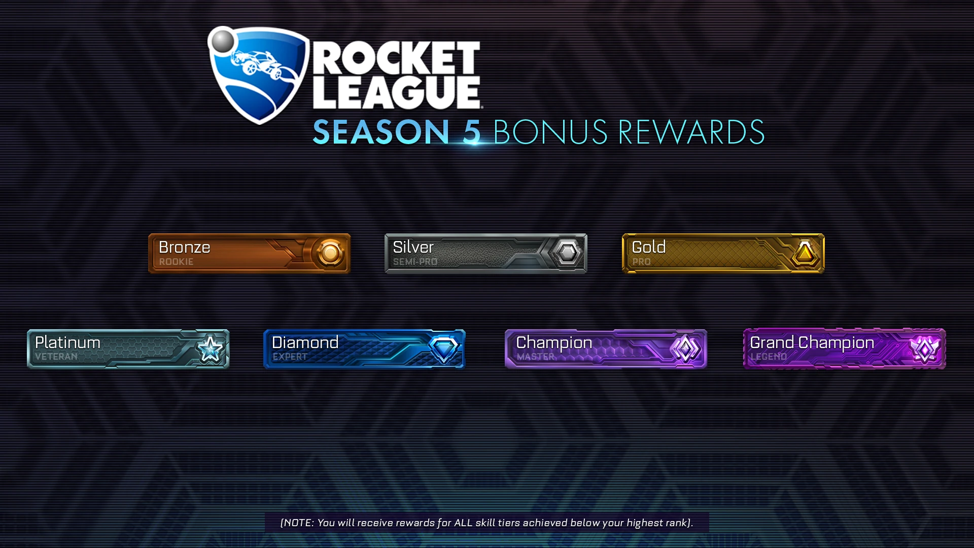 - Grand Champion – 'Season 5 Grand Champion' in-game Title + Season 5 Grand Champion ‘Dragon’ Player Banner + Season 5 Grand Champion ‘Standard’ Player Banner + lower Banners