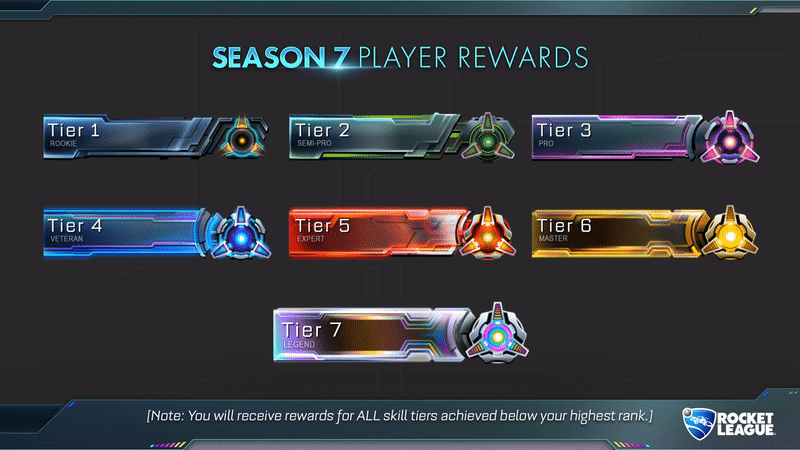 - Grand Champion – 'Season 7 Grand Champion' in-game Title + ‘Season 7 - Tier 7’ Player Banner + lower Player Banners